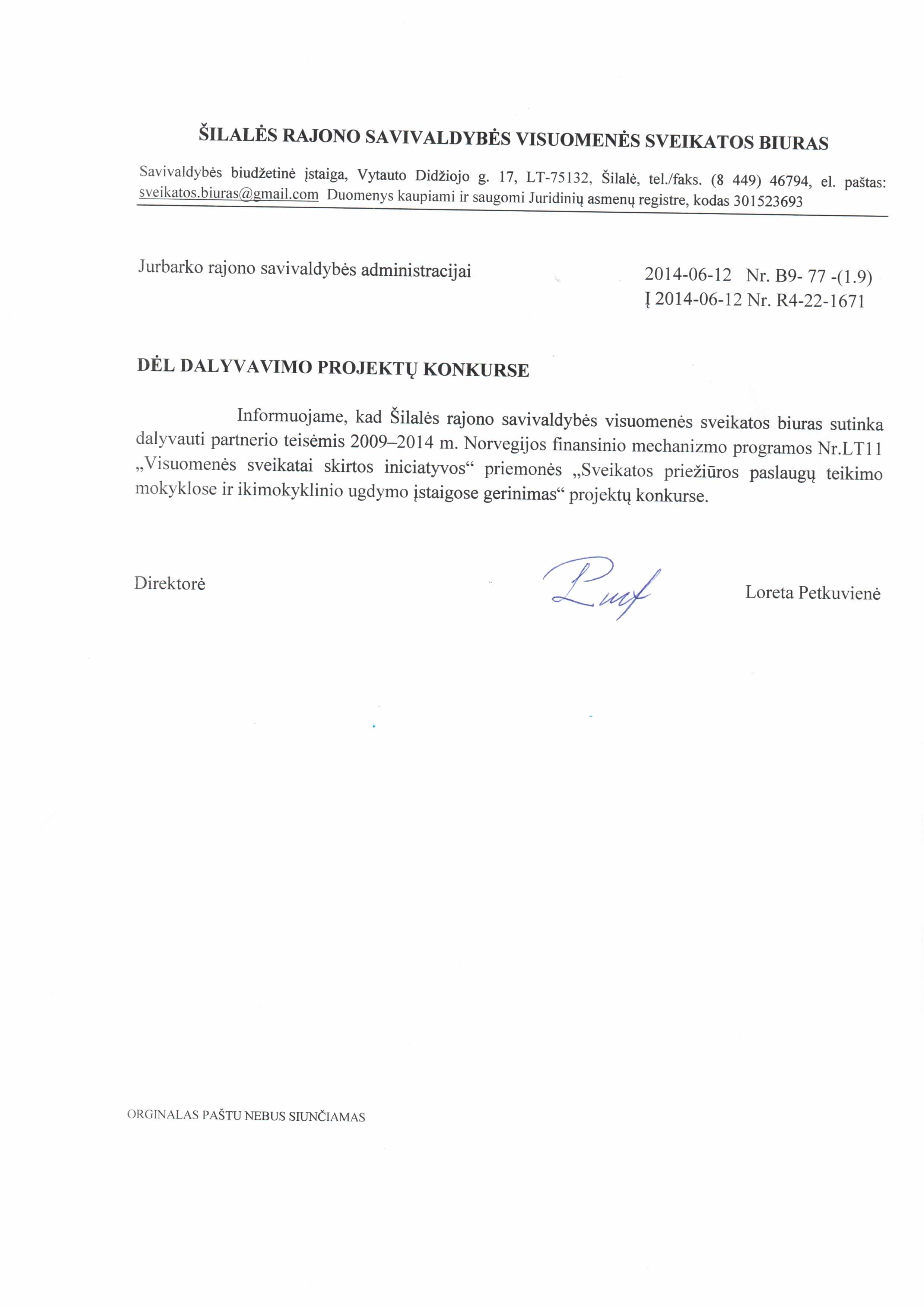 Dėl pritarimo Jurbarko rajono savivaldybės dalyvavimui 2009-2014 m. Norvegijos finansinio mechanizmo programos Nr. LT11 „Visuomenės sveikatai skirtos iniciatyvos“ priemonės „Sveikatos priežiūros paslaugų teikimo mokyklose ir ikimokyklinio ugdymo įstaigose gerinimas“ projektų konkurse